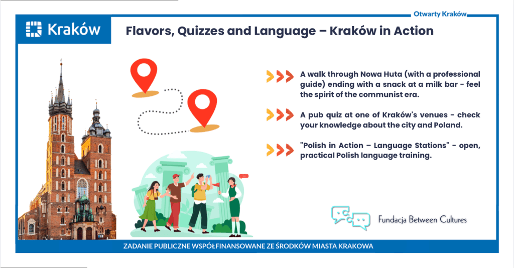 The project is a series of three events supporting the integration of people with migration and refugee experience and Krakow residents through learning Polish and discovering the multicultural heritage of the city.